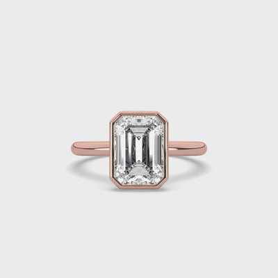 Bezel Emerald Diamond Solitaire Ring