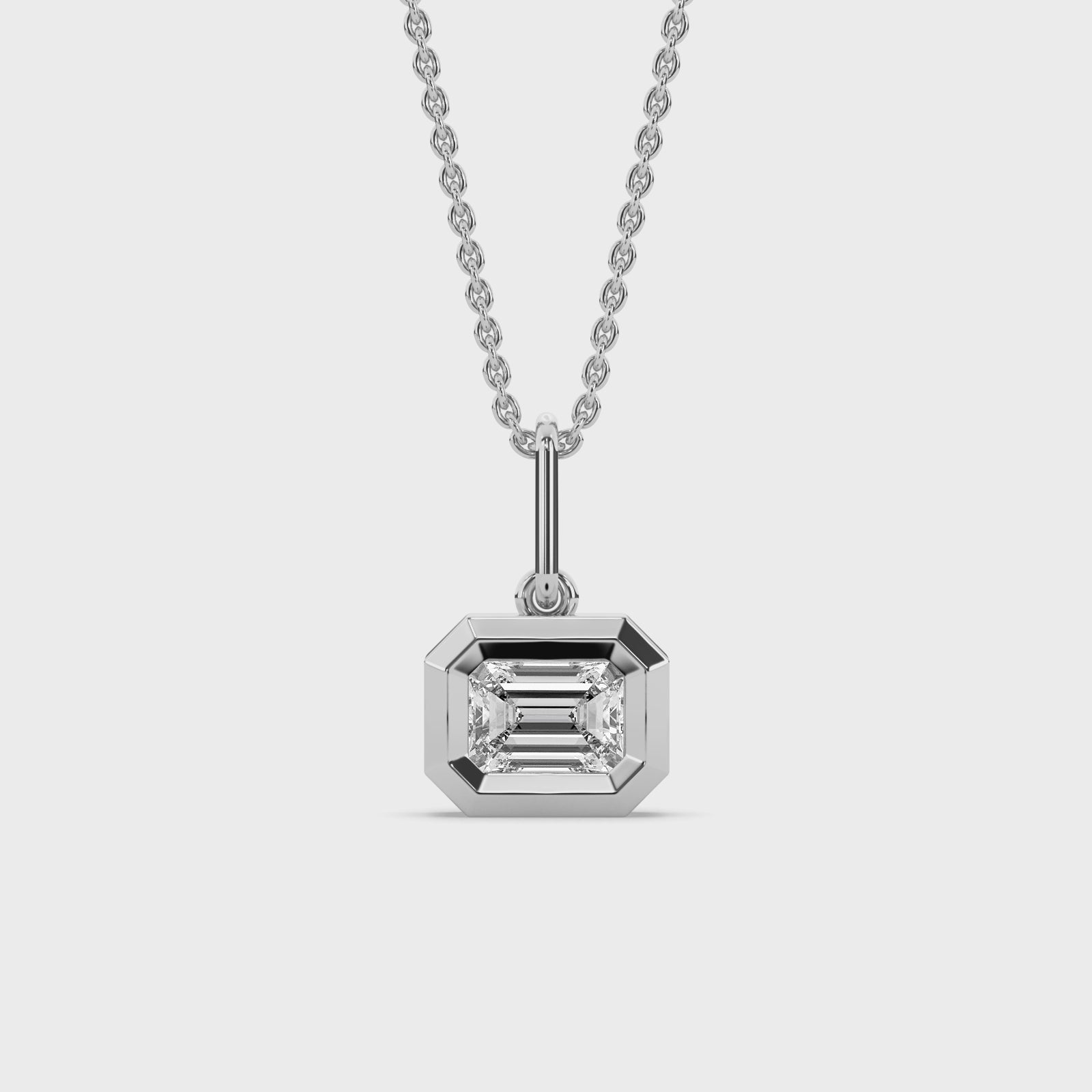Defined by clean lines and the quiet depth of an emerald cut, this bezel charm balances modern geometry with enduring sentiment. It serves as a personal anchor, catching the light with a calm, deliberate clarity that feels both architectural and intimate.