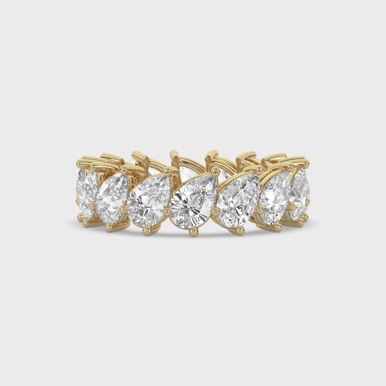 A departure from the conventional eternity band, this piece carries the quiet confidence of a woman who knows her own form. Pear-cut lab-grown diamonds, hand-set in a low-profile design, rest side by side in an unbroken line—each stone mirroring the next with precision and intention. The silhouette is sharp where it needs to be, and seamless where it matters most.