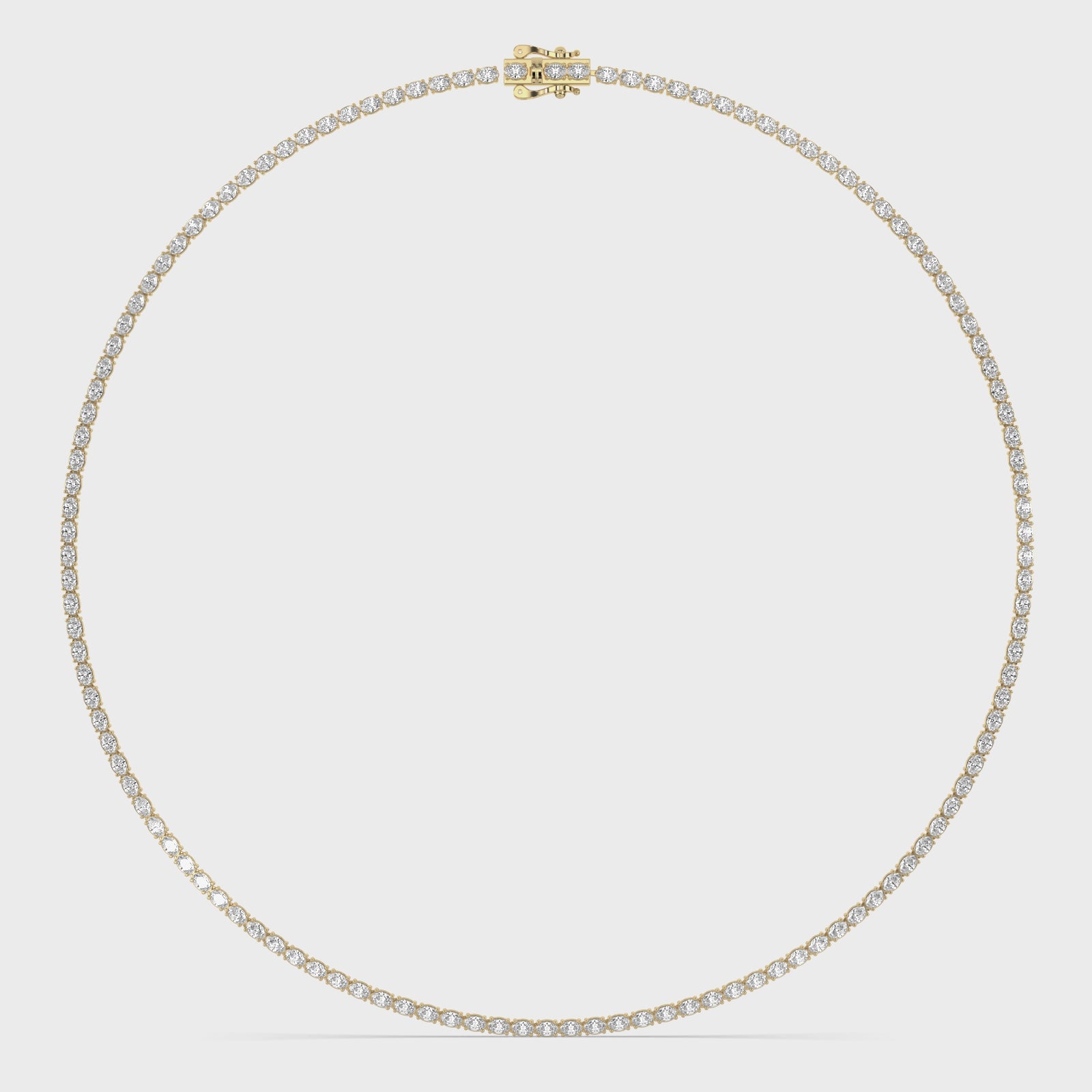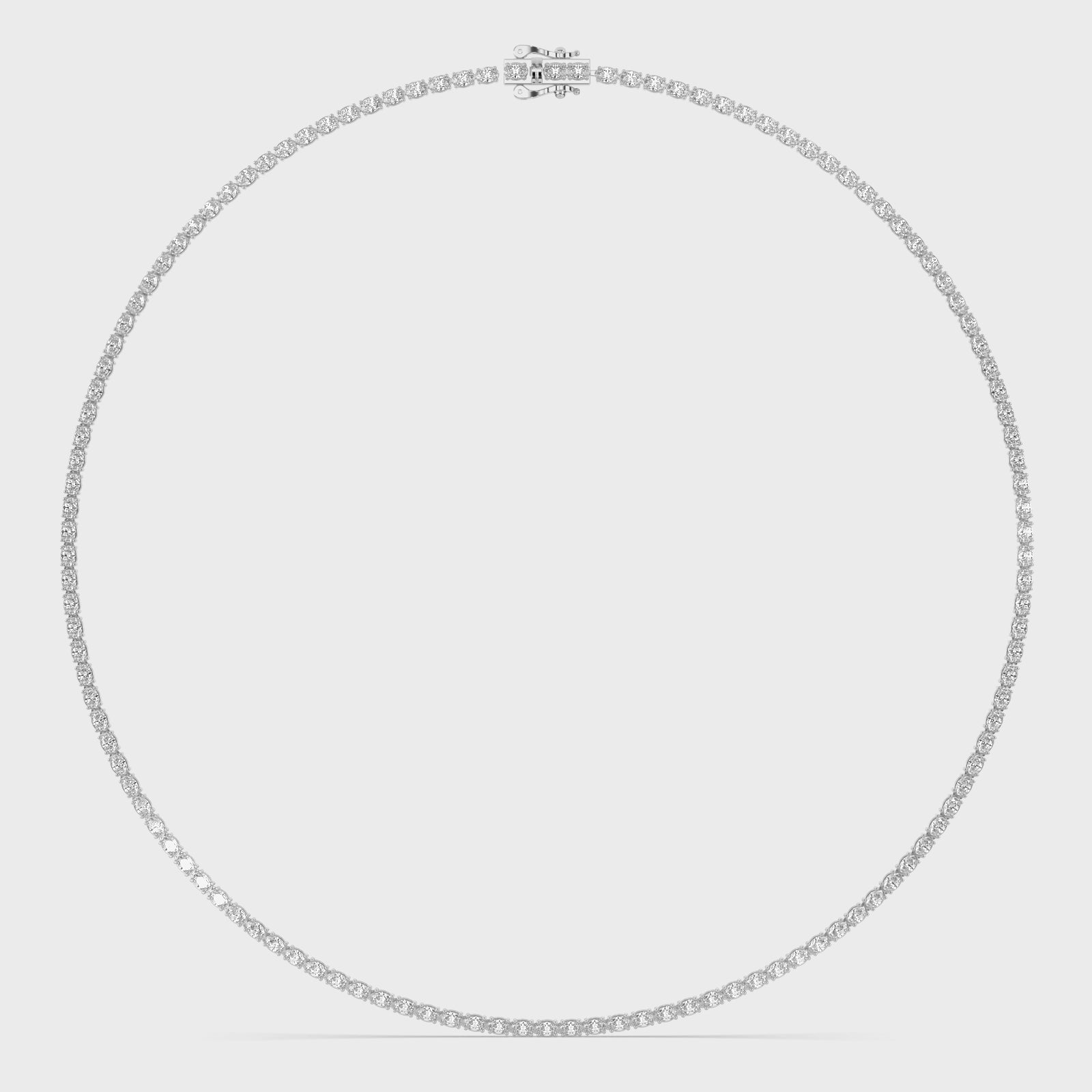 A contemporary interpretation of the tennis necklace, designed with oval diamonds set horizontally in a continuous line of light. This piece balances presence with restraint—refined enough to stand alone, intentional enough to anchor a layered look.