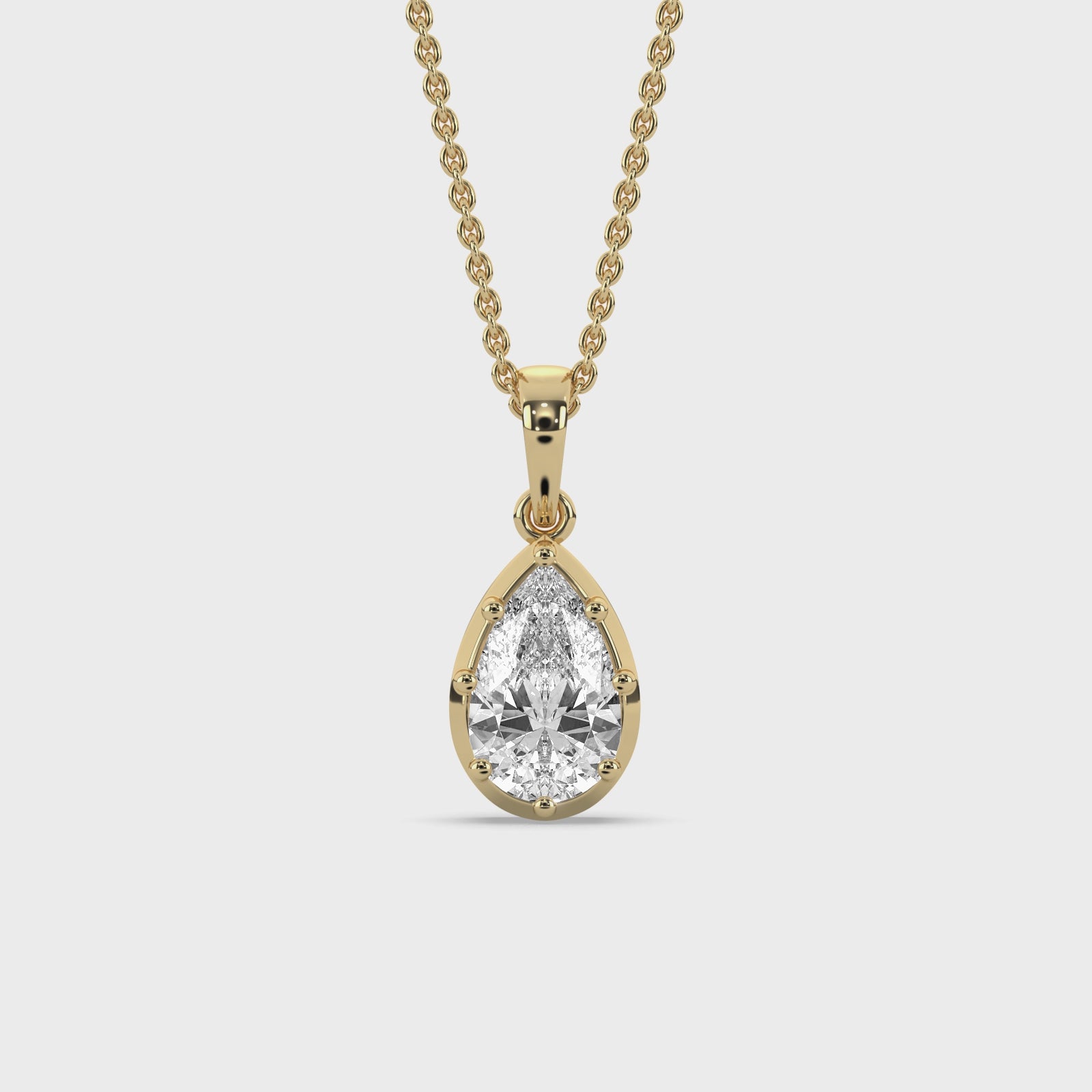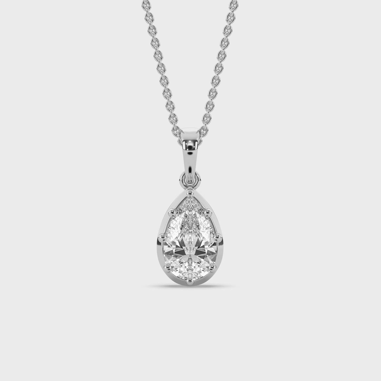 Inspired by the organic shape of a pear, a symbol of longevity and abundance, this design softens the traditional brilliant cut with a fluid, feminine silhouette. The singular stone suspends effortlessly, a testament to the beauty found in simplicity and restraint.
